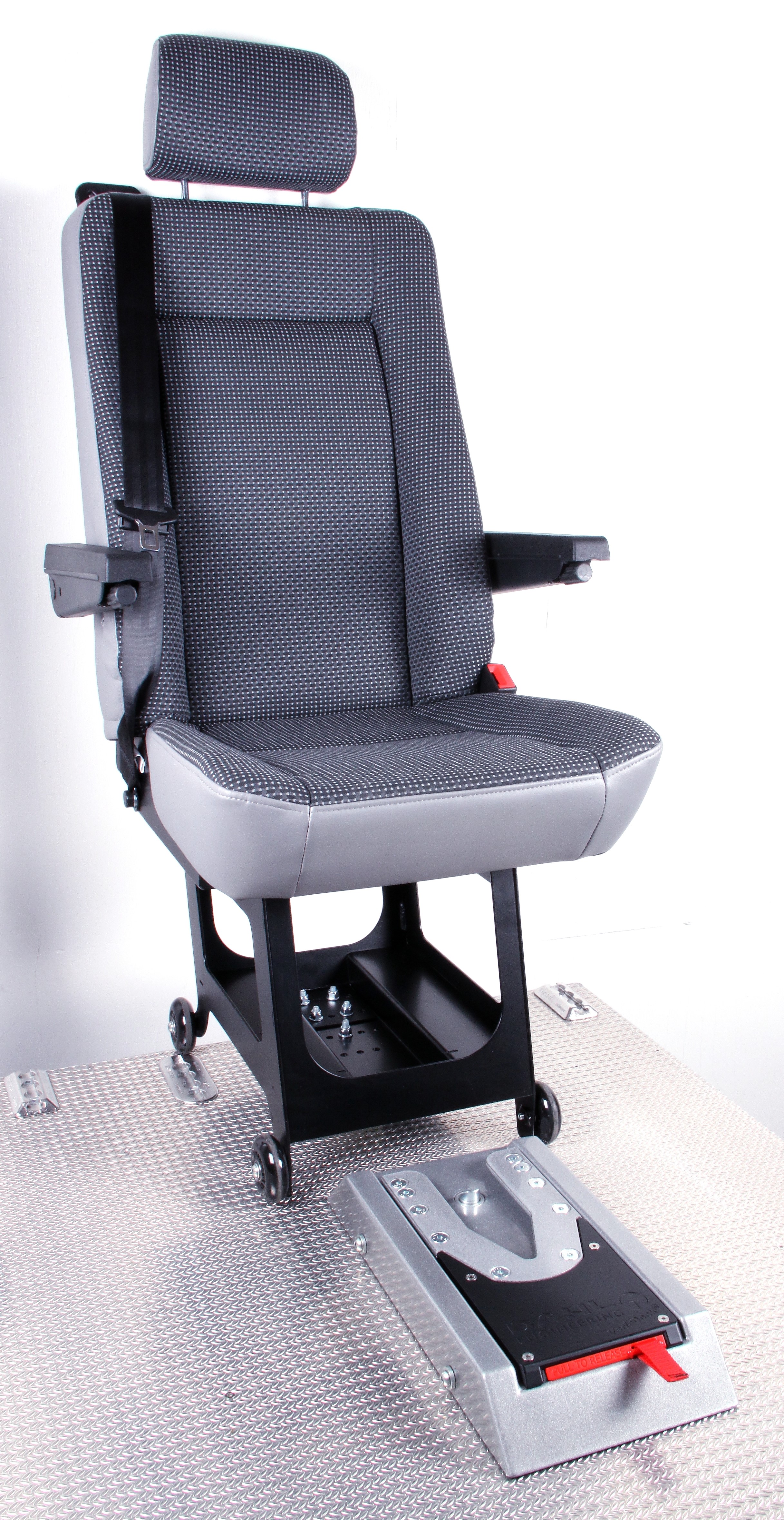 Thanks to the Dahl VarioDock™ system, securing wheelchair users and other seated occupants can be carried out with an unprecedented ease, speed and safety. The Dahl VarioDock™ docking system offers more flexibility and versatility than any other seat anchoring system because the seat and wheelchair layout can be changed very quickly with a minimum of effort and time consumption. See design examples for anchoring seats here. A docking system also improves the working environment considerably for drivers, who often struggle with crammed spaces and bad working positions when tying down wheelchairs with 4 point strap systems.