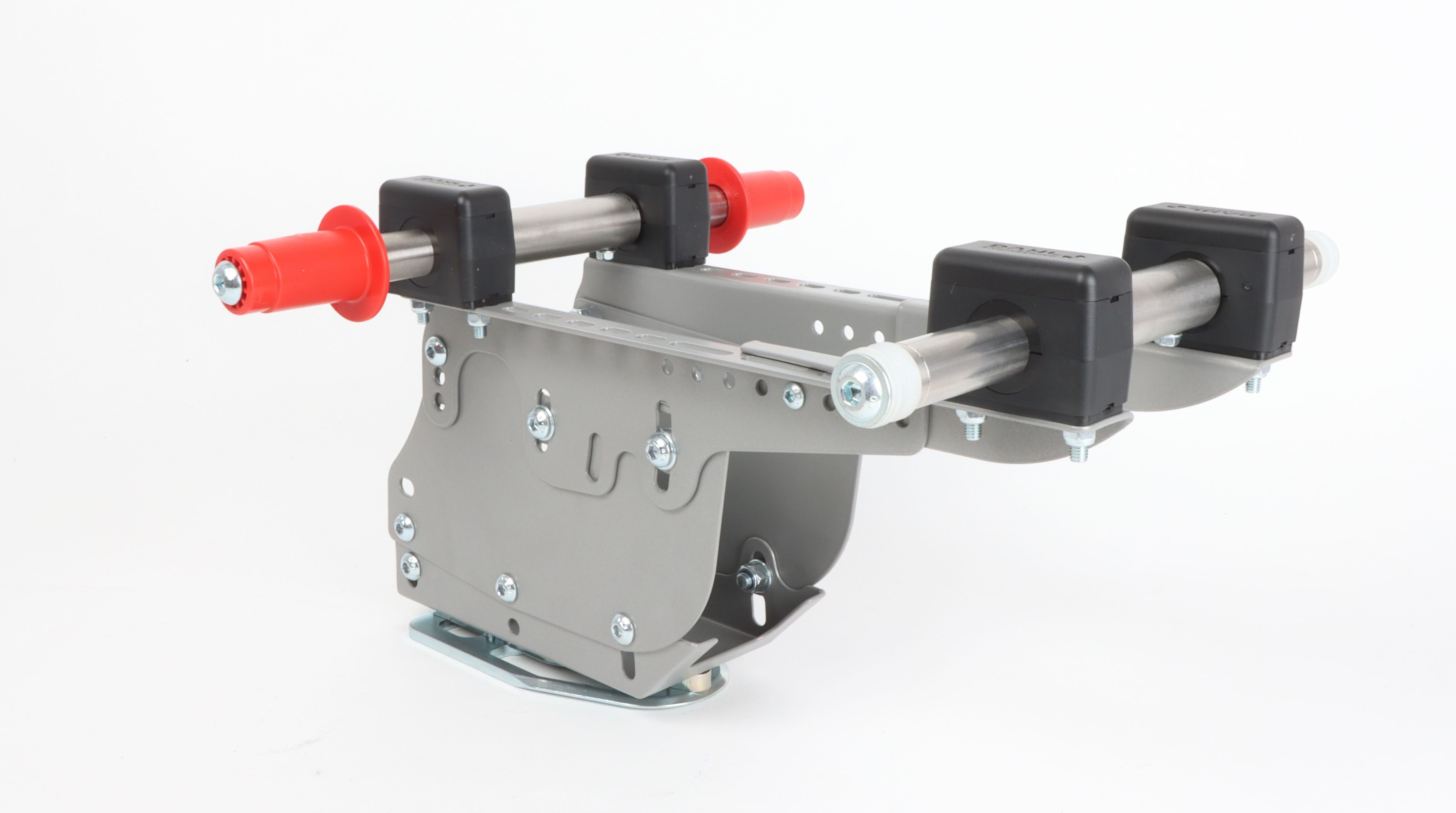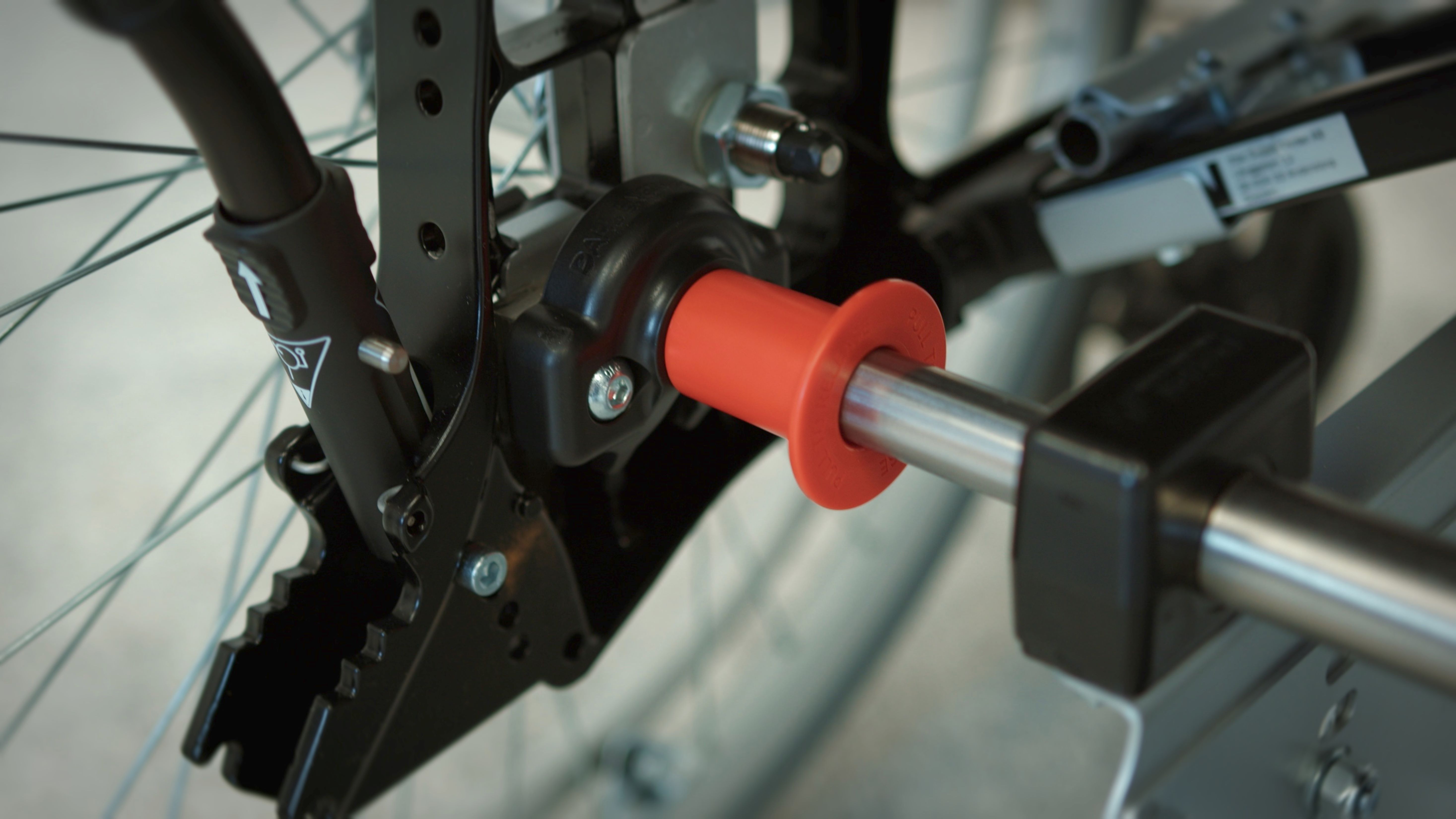 Et beslag monteret på kørestolens ramme, samt et enkelt og effektivt låsesystem gør, at underrammen kan til- og frakobles uden brug af værktøj som også er et ufravigeligt krav når kørestolen skal foldes sammen.
