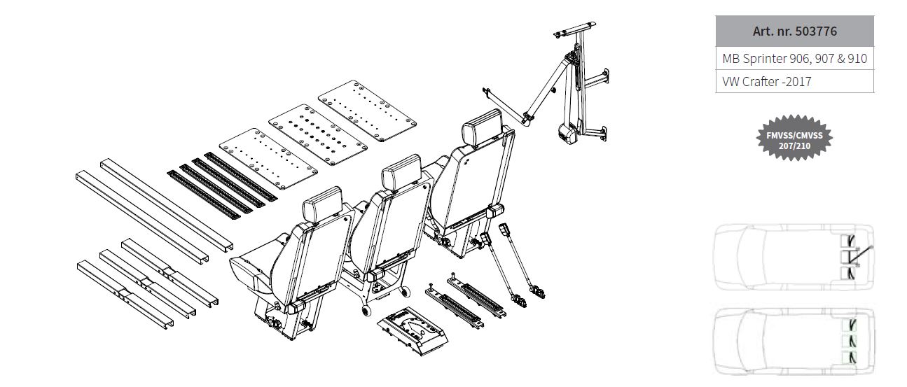 Vær opmærksom på at kontrollere køretøjs kategorisering (M1, M2 eller M3), hjulafstand, udstyrsvarianter, original og eftermonteret udstyr f.eks. en lift, som er afgørende for om et køretøj er egnet til en given indretning, da dette påvirker køretøjets nyttelast, krav til afstand mellem sæder og kørestole, gangbredde samt adgang til nødudgang m.m.